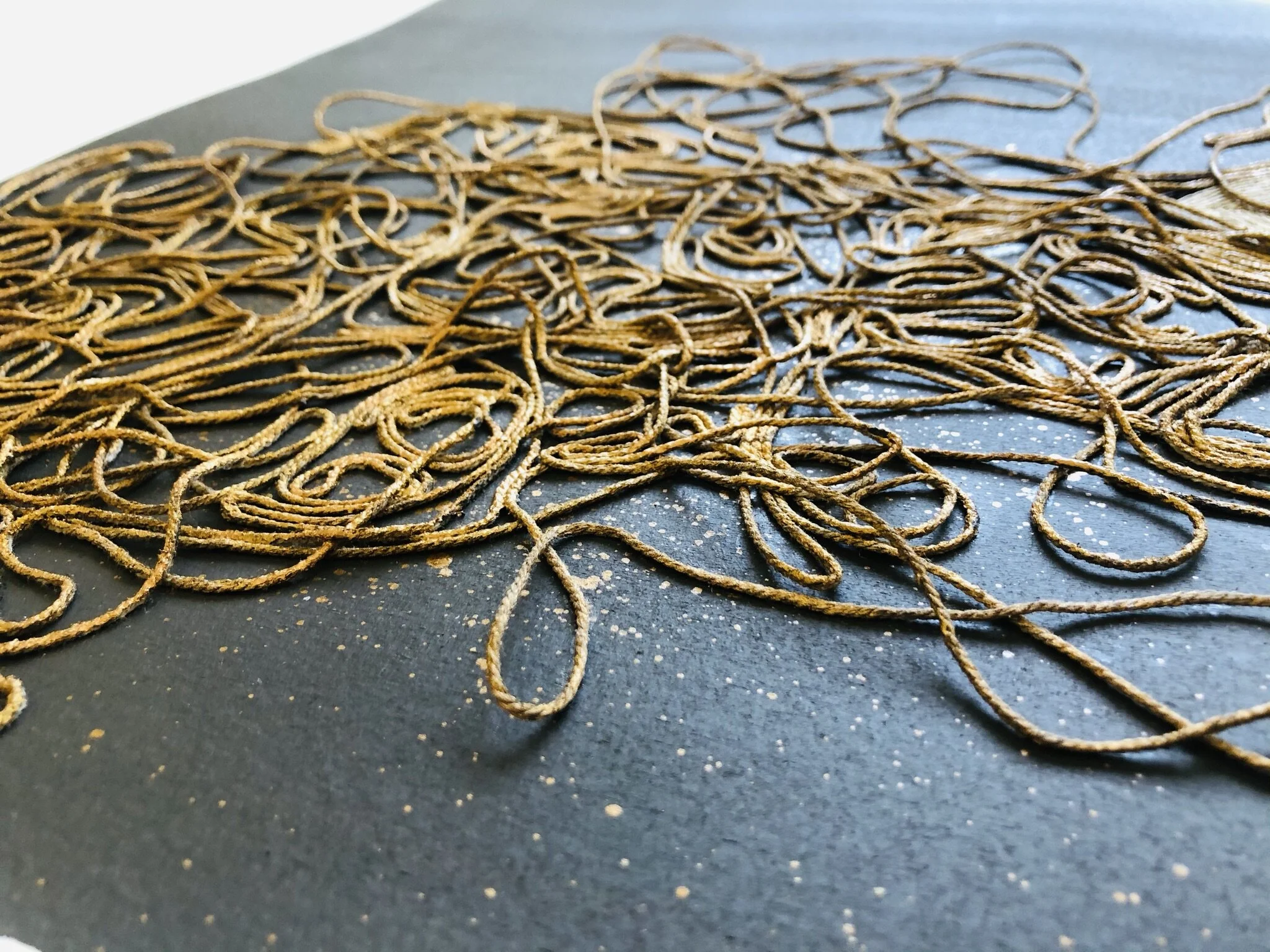 This piece is a nod to Guatemala’s most active volcano, Pacaya. Whether it’s erupting in daylight or nighttime, this is a sight to be seen! I took a very textural and somewhat minimal approach with my materials to showcase the powerful fire and force that comes with Pacaya’s power. ( Mixed media: twine, acrylic on watercolor paper)